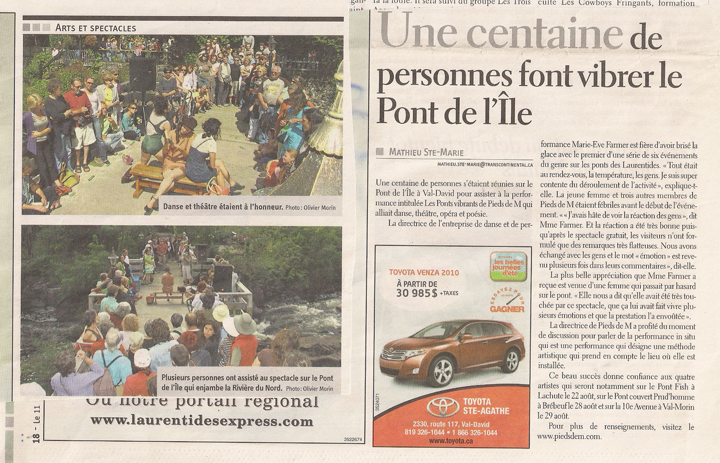 • Echo du Nord, 11 août 2010, Isabelle Houle. Voir l'article »
