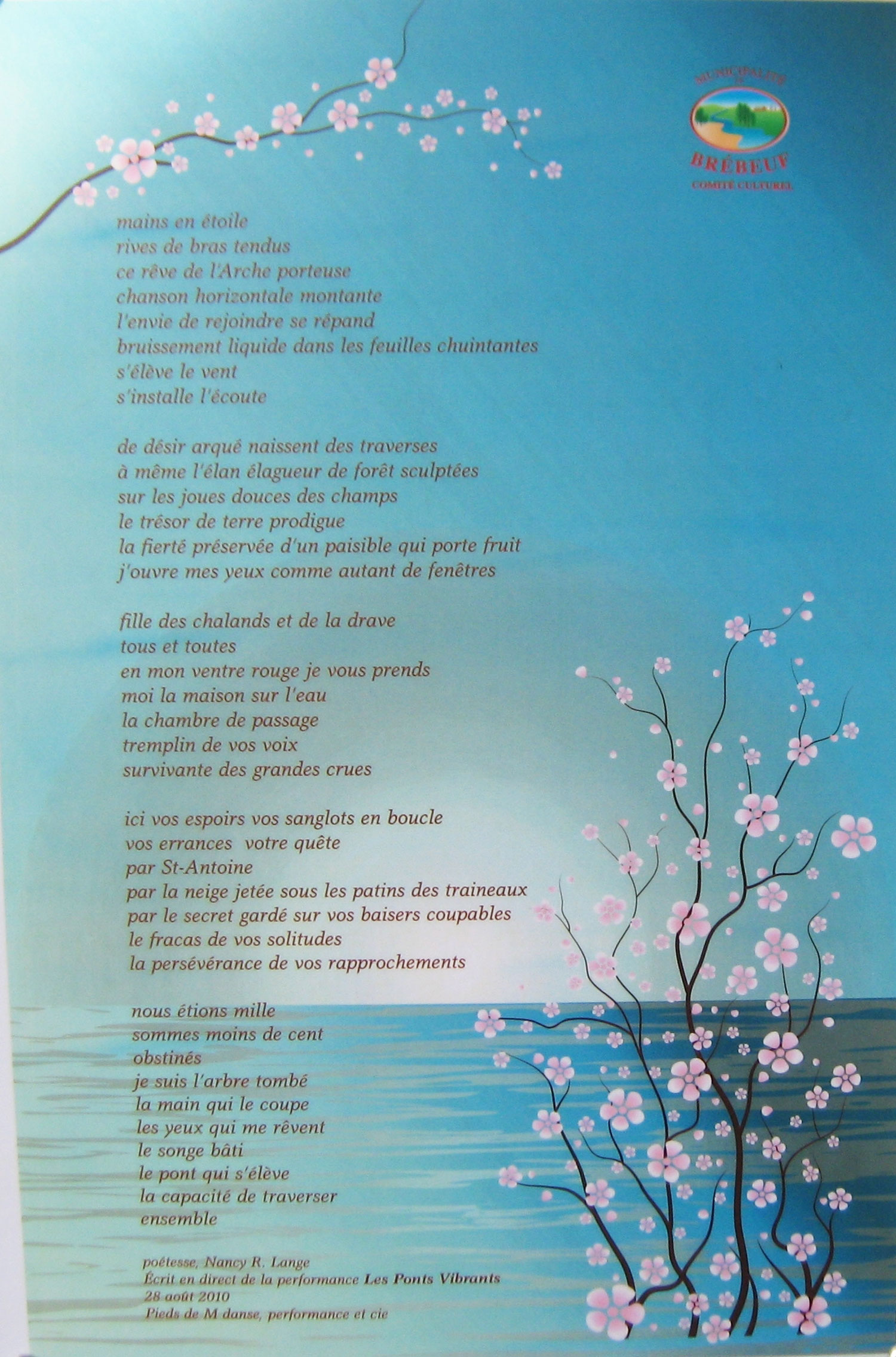 • Brébeuf, 26 aout 2010, Nancy R. Lange. Voir le poème »